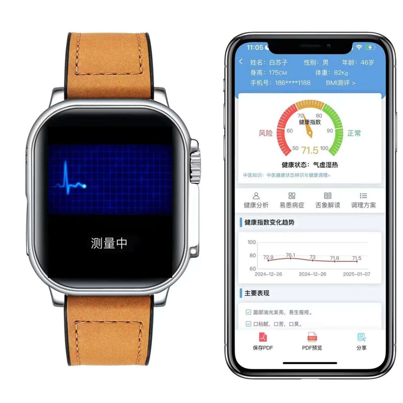 Ai智能中医康疗云诊手表,医疗级中医黑科技!依托安徽中医药大学千万级的临床数据,舌诊、面诊、纹诊、声诊四大中医AI检测,获国家医疗器械认证,报告精准媲美三甲医院!实时监测心率、血氧、血压,独创中医穴位按摩,亚健康随时调理。一人购买,全家共享!爸妈的慢病、孩子的体质、伴侣的疲劳,云端生成专属中医体检报告,健康隐患早发现!中医智慧+智能科技,全家人的健康伴侣!