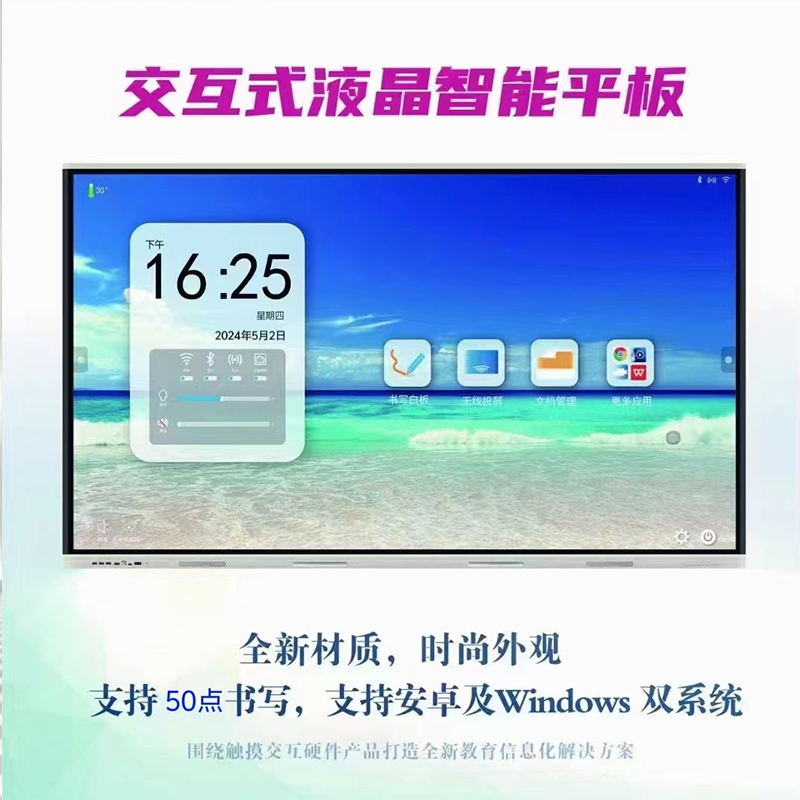 数字化触摸会议教学一体机,专业显示,自然书写,远程协同会议的完美解决方案;八机合一,构建多样化办公室体验光感识别,实现对不同光亮的环境下,指自动调整屏幕亮度功能;4K 高清防眩光液晶屏,红外多点触摸;高精度,人性化设计,满足高效书写需求。